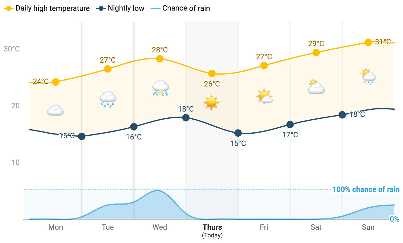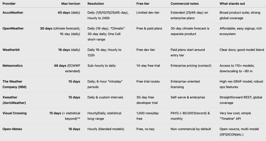 Ich suche trotzdem noch nach Möglichkeiten oder Quellen, um Wetterdaten für mehr als zwei Wochen zu bekommen, weil das die Planung von Reisen, Wochenenden und all den schönen Dingen noch einfacher machen würde.